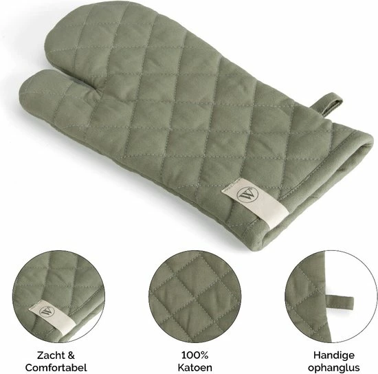 Deze ovenwant is gemaakt van een hoogwaardige kwaliteit en biedt de perfecte dikte om warme schalen uit de oven te halen of hete pannen mee vast te pakken. Voorzien van een stijlvolle ruitstructuur en een handige lus zodat je hem makkelijk op kunt hangen bij het andere keukentextiel. De perfecte aanvulling op jouw keukentextiel. Verkrijgbaar in neutrale kleuren die mooi staan in iedere keuken.
