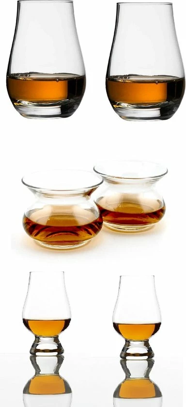 Een mooie proefset van 3 verschillende iconische proefglazen in de Whisky wereld. Het betreft 2 x Glencairn glazen, 2 x Spey dram glazen, 2 x Neat Glazen.