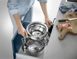 Met de Compact Cuisine pannenserie bespaar je tot 30%* ruimte in je keukenkastje dankzij het slimme stapelbare design. Alle diameters zijn stapelbaar, je kunt tot 4 items opstapelen. De holle handgrepen worden niet heet tijdens het koken, wat zorgt voor extra gemak en veiligheid.