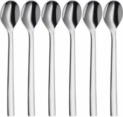 Deze WMF Nuova latte macchiatolepels komen in een setje van 6 en hebben een lengte van 19 cm.