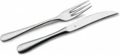 Deze scherpe steakmessen zijn perfect voor gegrilld vlees, krokant van buiten en sappig mals van binnen. Het steakmes heeft een zeer scherpe kling van speciaal staal en is voorzien van een golfslijping. De greep ligt goed in de hand en optimaal te kunnen snijden. De tanden van de vork zijn fijn geslepen en net afgewerkt. Ieder deel heeft een uitgebalanceerd gewicht en aangename vorm waardoor het goed in de hand ligt. Het bestek heeft een prachtig tijdloos design. Het hoogglans gepolijste oppervlak zorgt voor een elegante look. Het materiaal Cromargan roestvrij staal 18/10 maakt het bestek stevig